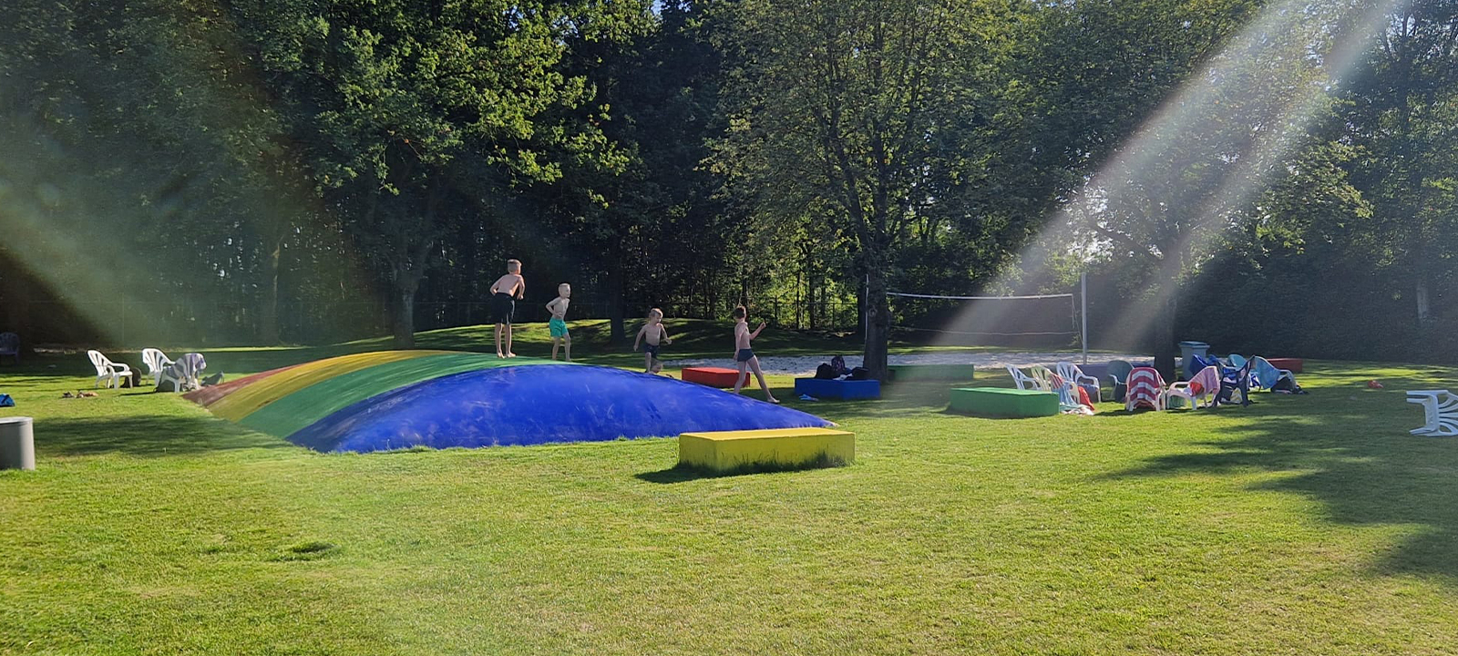 Naast zwemmen is er nog veel meer te beleven! Leef je uit op het zand sportveld, ideaal voor een potje beachvolleybal of voetbal. Daag je vrienden uit bij de pingpongtafel of spring erop los op ons grote springkussen – plezier gegarandeerd!
